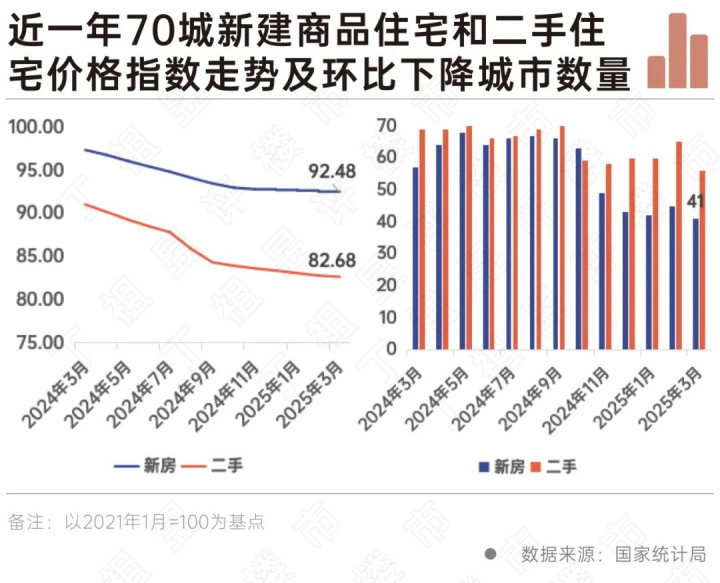 2025年一季度,存量商品房(二手房)转移登记同比大幅增长34.7%,达到164.6万件。而据统计局数据,同期商品房成交同比小幅回落3%,2.2亿平方米,大约219万套。相比一季度一手房的持续筑底而言,二手房市场率先发出了回稳信号。